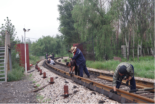 集團(tuán)專用鐵路線是公司煤炭、原料等物質(zhì)運(yùn)輸大動(dòng)脈,它的暢通能有效保證了集團(tuán)各生產(chǎn)車間的生產(chǎn)任務(wù)。由于工廠產(chǎn)量加大、載貨火車經(jīng)常超負(fù)荷運(yùn)輸,再加上線路鋼軌曲徑小等原因,造成軌道銜接處出現(xiàn)低接頭現(xiàn)象以及部分鋼軌損壞,這些情況極易影響行車安全。為了保證鐵路運(yùn)輸安全暢通,必須對(duì)存在安全隱患的75米鋼軌路段進(jìn)行維修更換,為不影響列車通行,鐵路總局要求維修工作必須在3小時(shí)內(nèi)結(jié)束,在時(shí)間緊任務(wù)重情況下,工務(wù)組全體職工發(fā)揚(yáng)不怕苦、不怕累的嘉晨精神,全身心投入到搶修工作中。